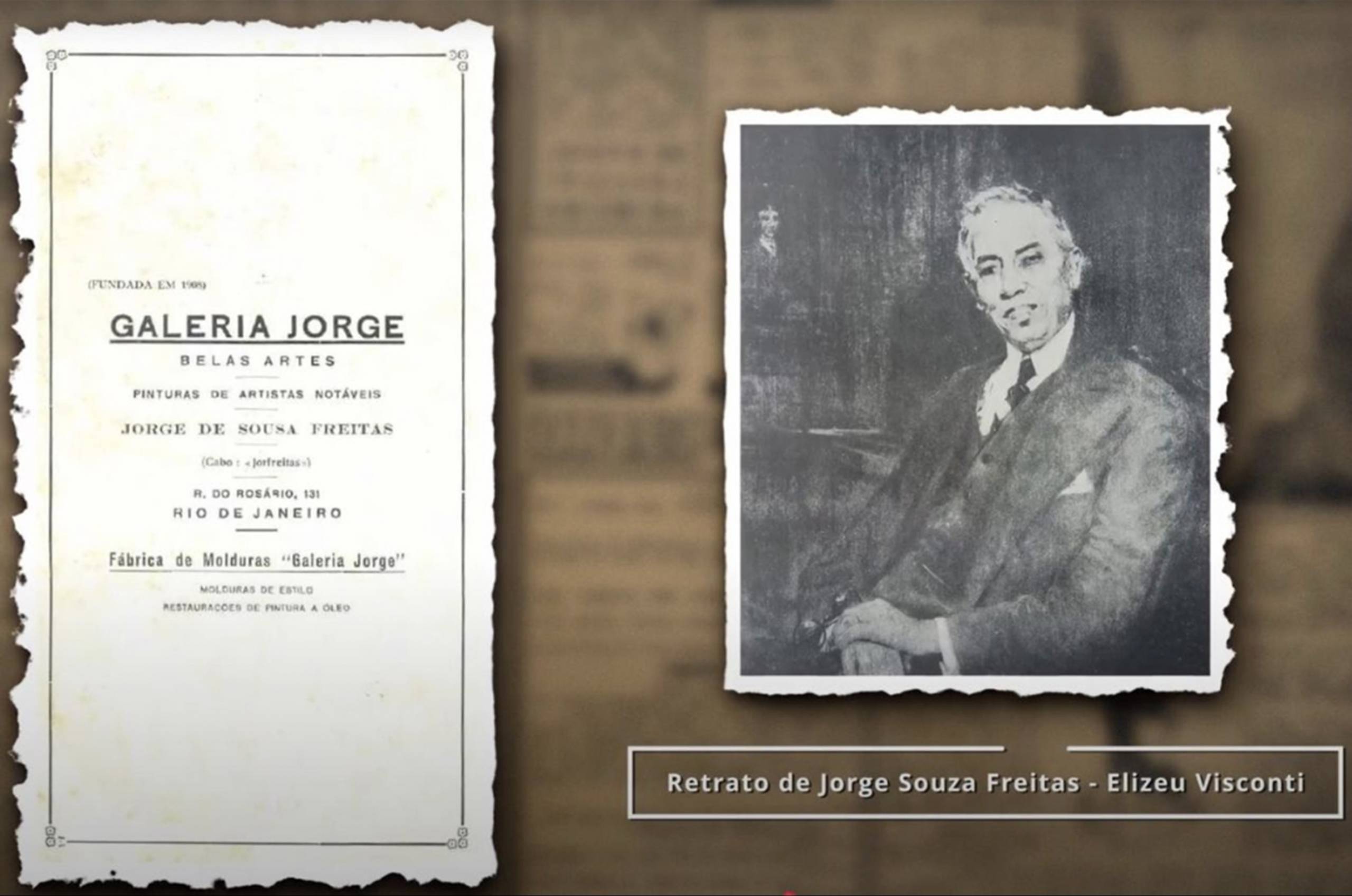 Localização Atual Exposições Individuais PublicaçõesO retratado era proprietário da Galeria Jorge, bastante atuante no mercado de artes no início do século XX, no Rio de Janeiro. Após anos de trabalho na Casa Vieitas, fundou sua própria galeria de arte, em 1902. Visconti fez sua exposição individual em agosto de 1920, logo que chegou da Europa, na seção da Avenida Rio Branco dessa galeria. No dia do encerramento da exposição, o pintor e o proprietário receberam a visita do presidente da República, Epitácio Pessoa. A imagem utilizada aqui é a reproduzida na biografia de Barata, p. 105, por ser a mais completa encontrada. No entanto, a reprodução no catálogo da exposição de 1949, tem uma qualidade bem melhor, embora falte uma faixa vertical à esquerda do observador, que exclui a imagem de um retrato na parede do fundo.